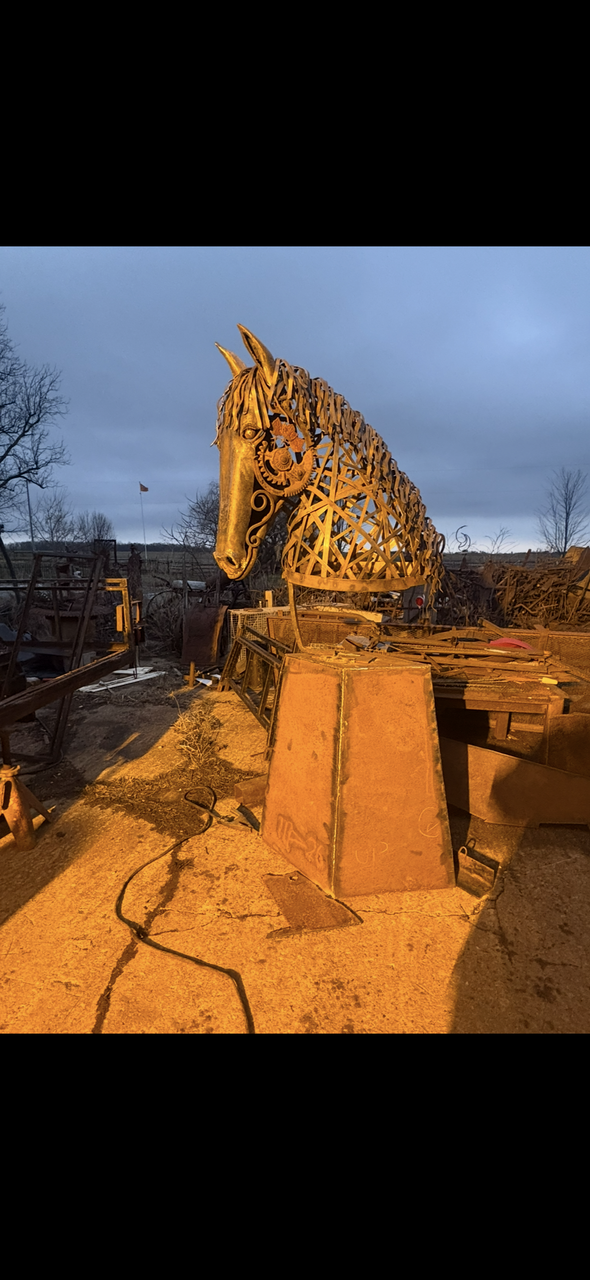 Adopted into an Ironworker family at a young age, I soon found my niche as a welder & handy with all tools. I created my first sculpture the age of 8. Away from art for many years, in my 40s found it a great way to vent my aggression & discouragement with the world around me. After finding my inner peace I make art not only for joy, but also to make a statement & I still love smashing stuff.