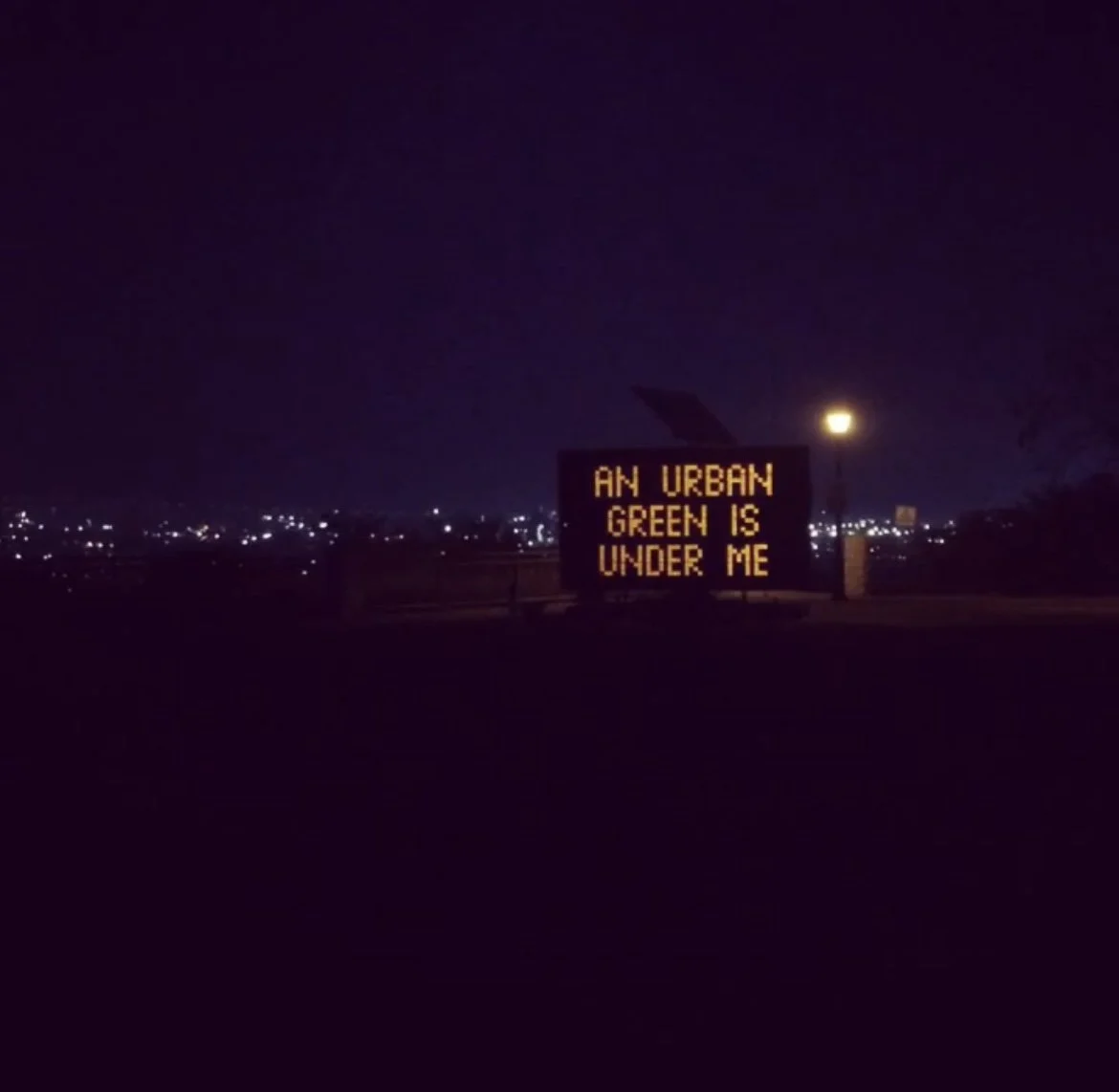 Since 1996, C.Wells / The Line Marker Practice has used the road schematics, its paint and its signage architecture as a creative index towards a further understanding of the colloquial meanings of place and space. An integral part of the project since its inception has been the creation of text works in various forms: creative studio statements for portable rotating billboards, vinyl lettering for museum walls, distributed leaflets, pin buttons and other multiples and formal essays